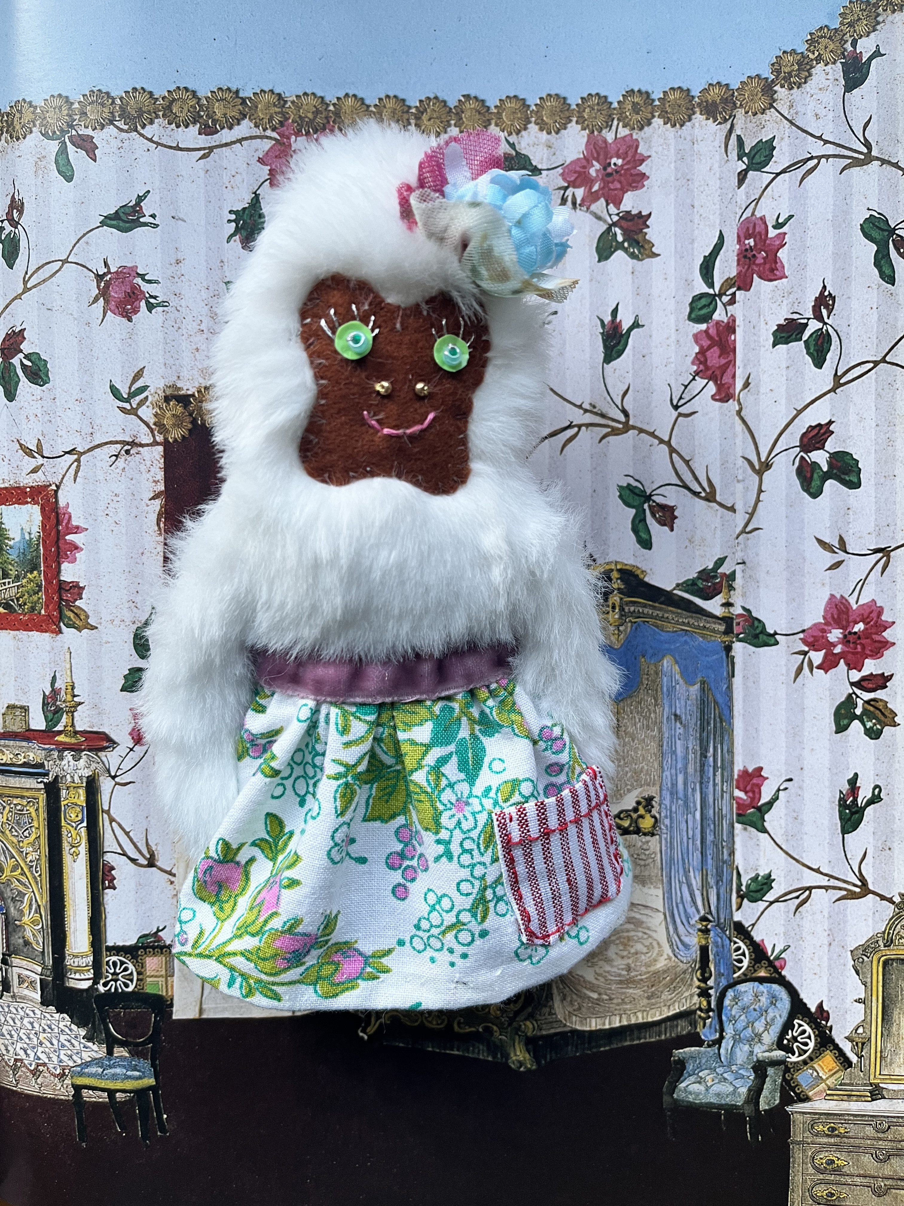 インドのゴールドのお花パーツやパリの生地屋街で買った星のチュール、
