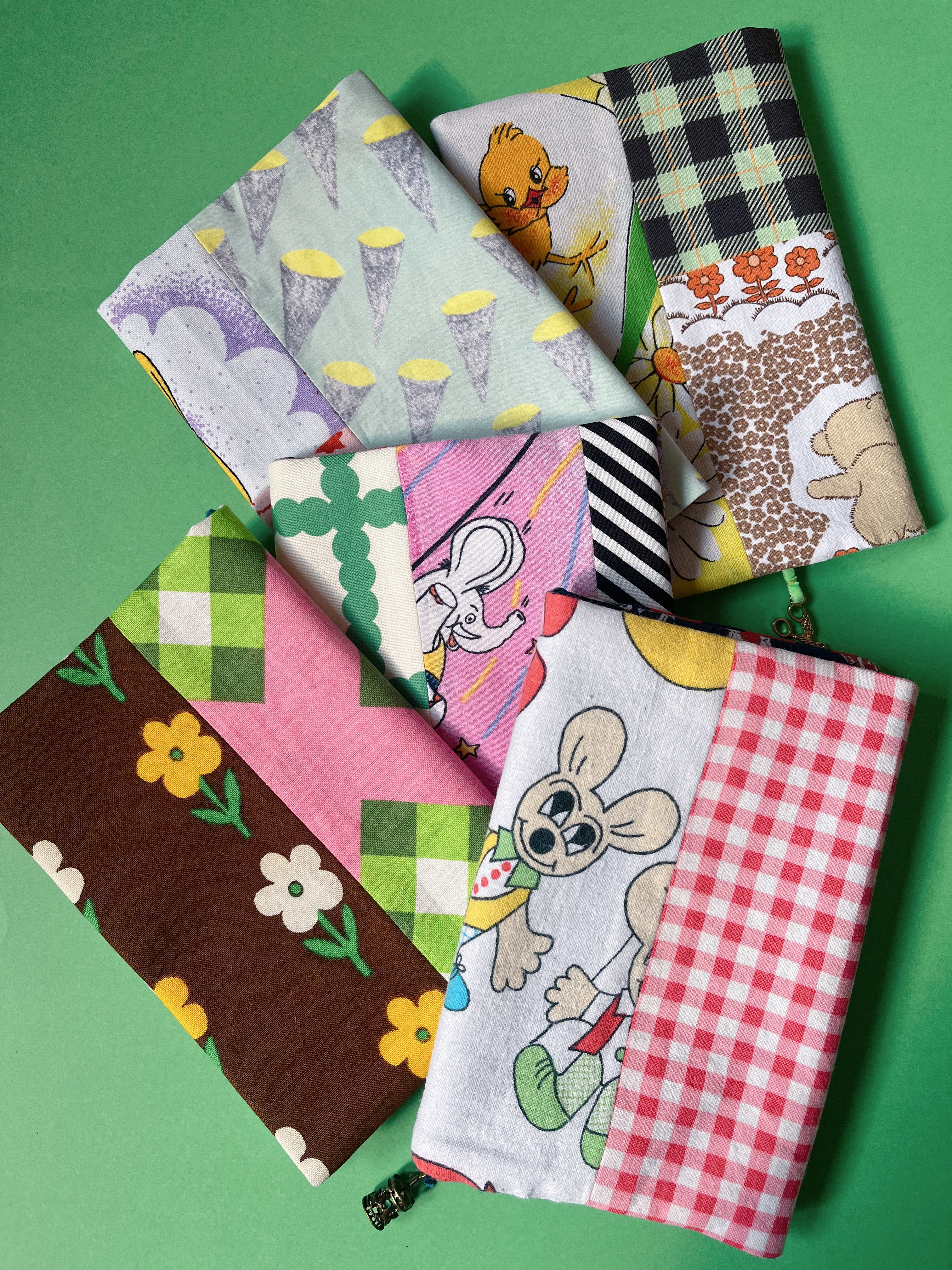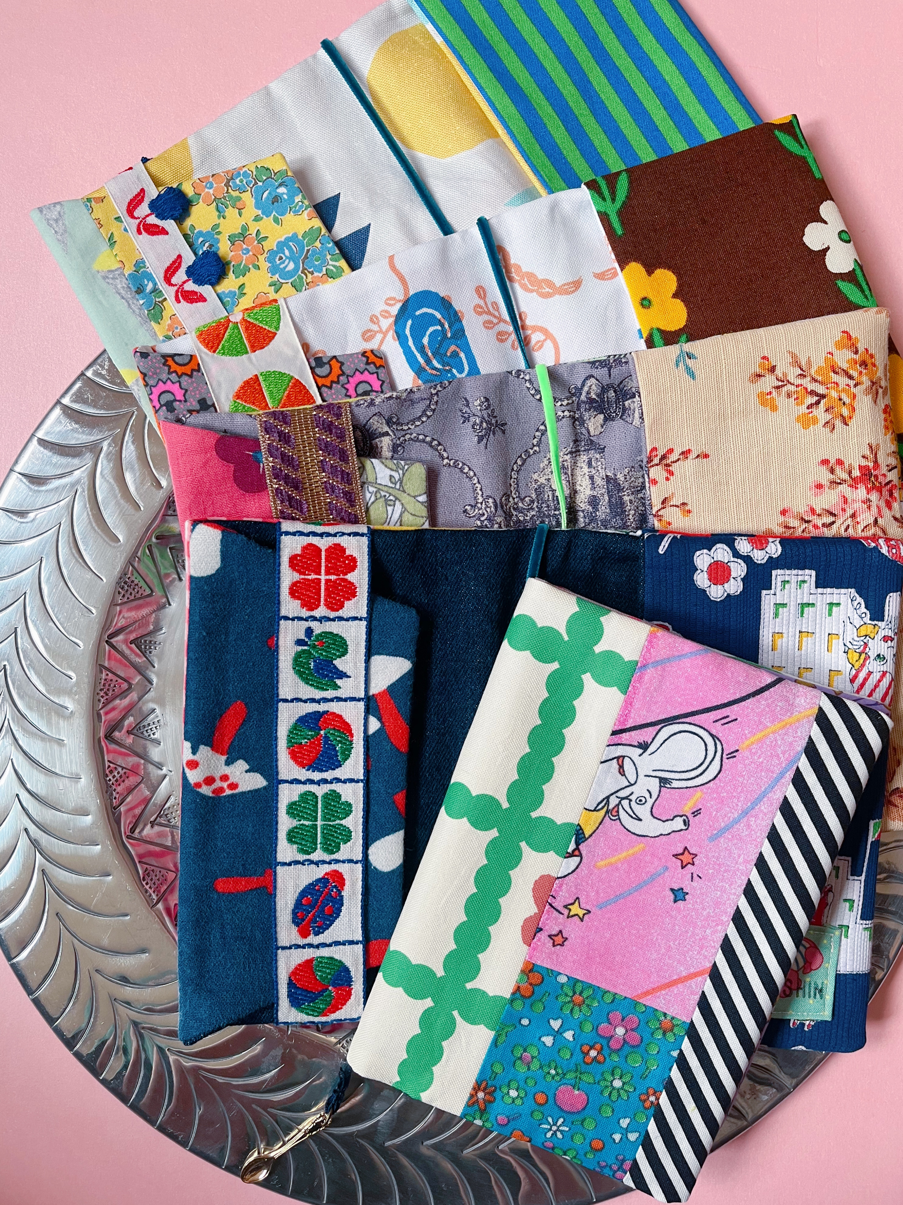 主にヴィンテージの生地を数種類パッチワークして作ったブックカバーができました。